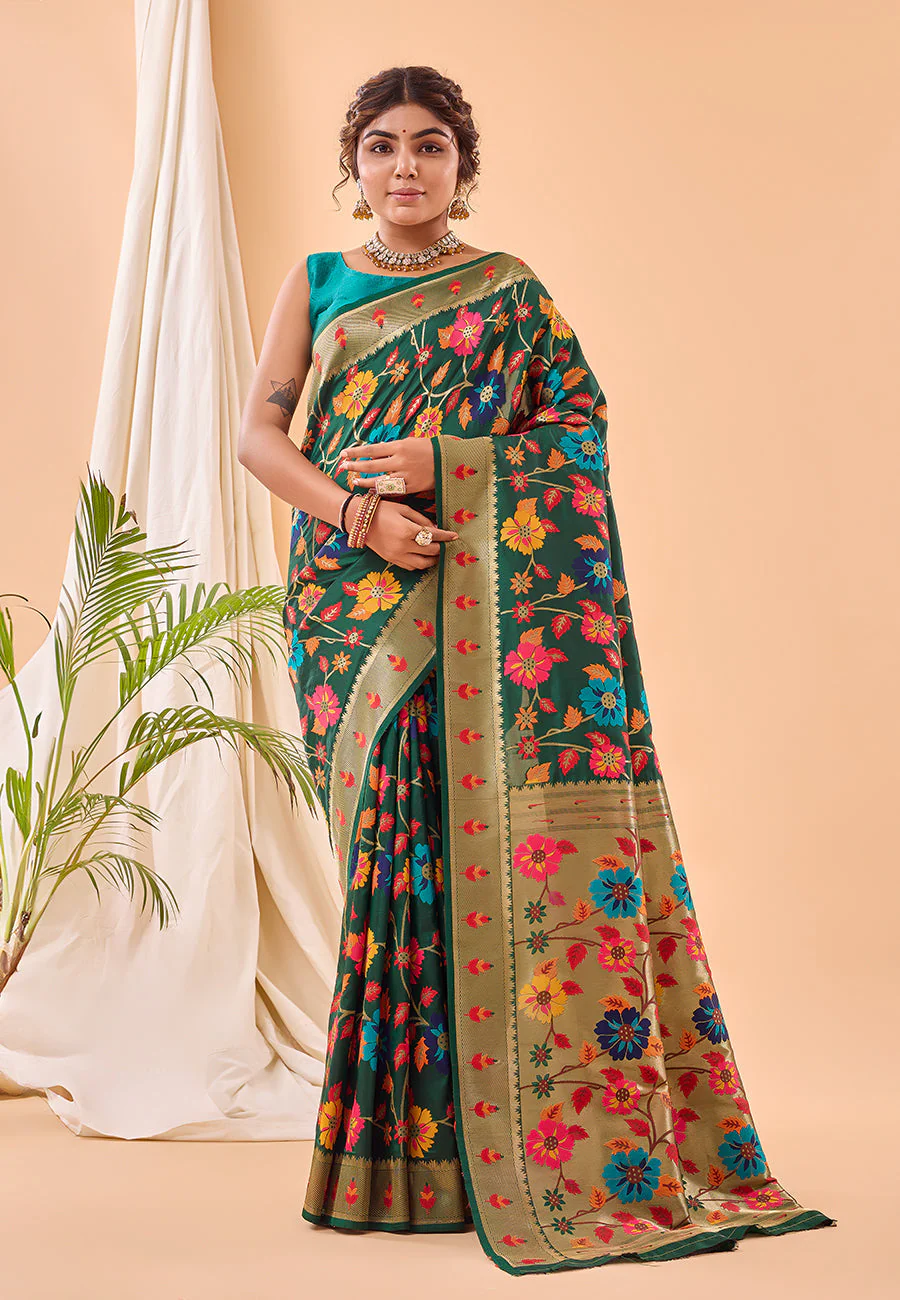 Bottle Green Radhika Kashmiri Pashmina Jaal Silk Woven Saree