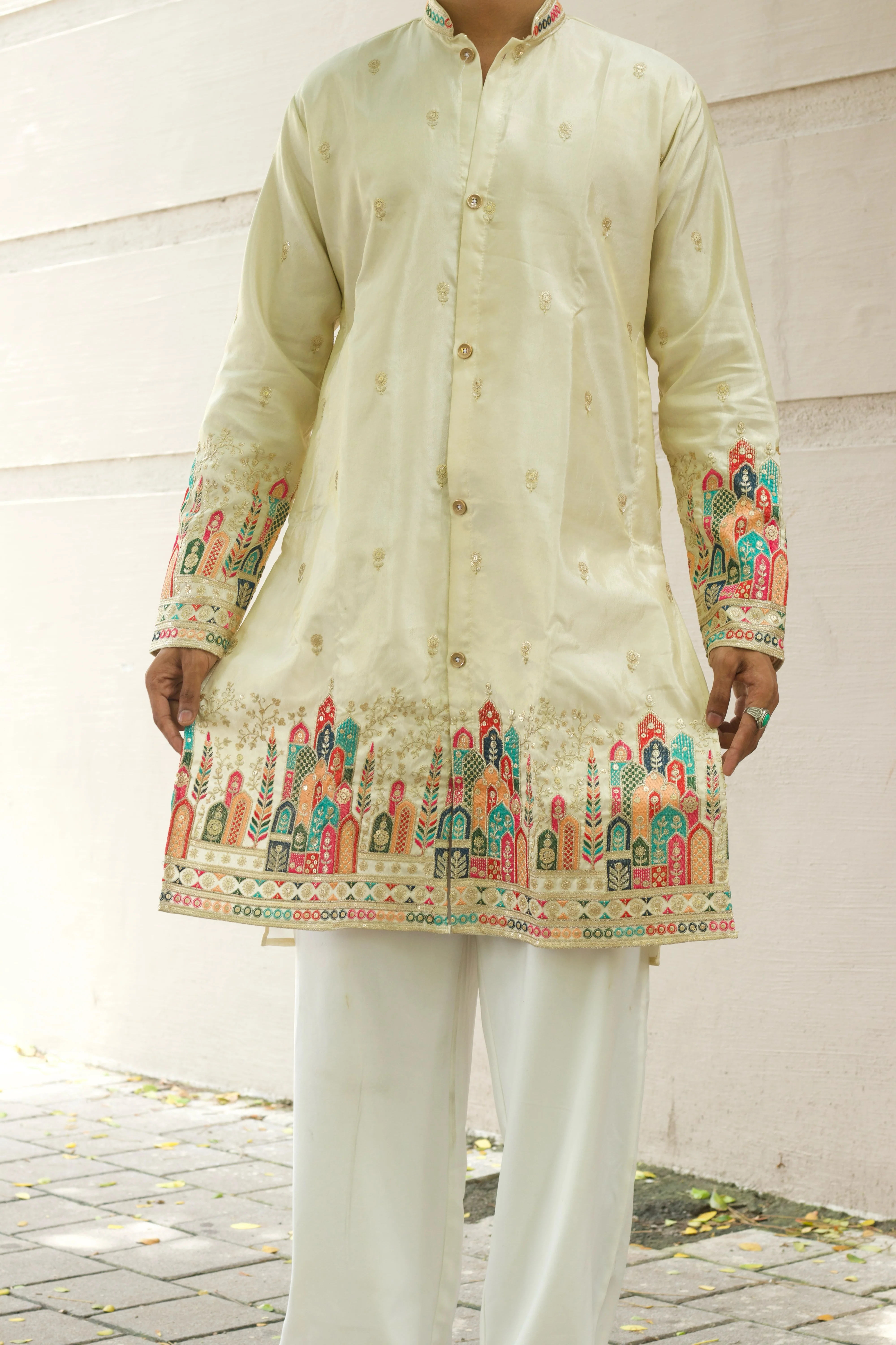 IVORY MINARA EMBROIDRED DESIGNER INDO-KURTA