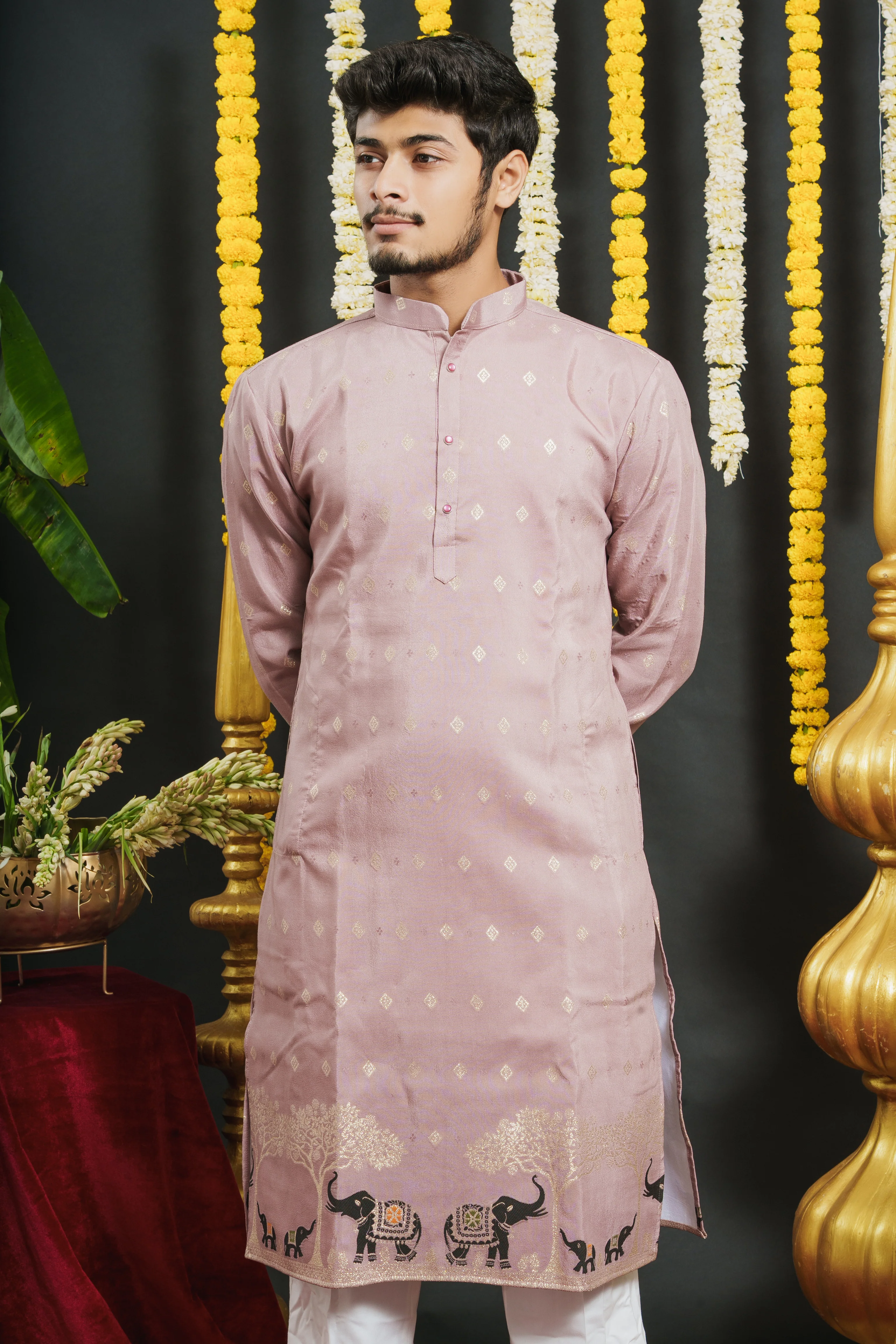 Kurta - Buy ONION PINK ELEPHANT PATTERN JACQUARD DESIGNER KURTAA for Male from Shriimant Kurta Collection for various occasions