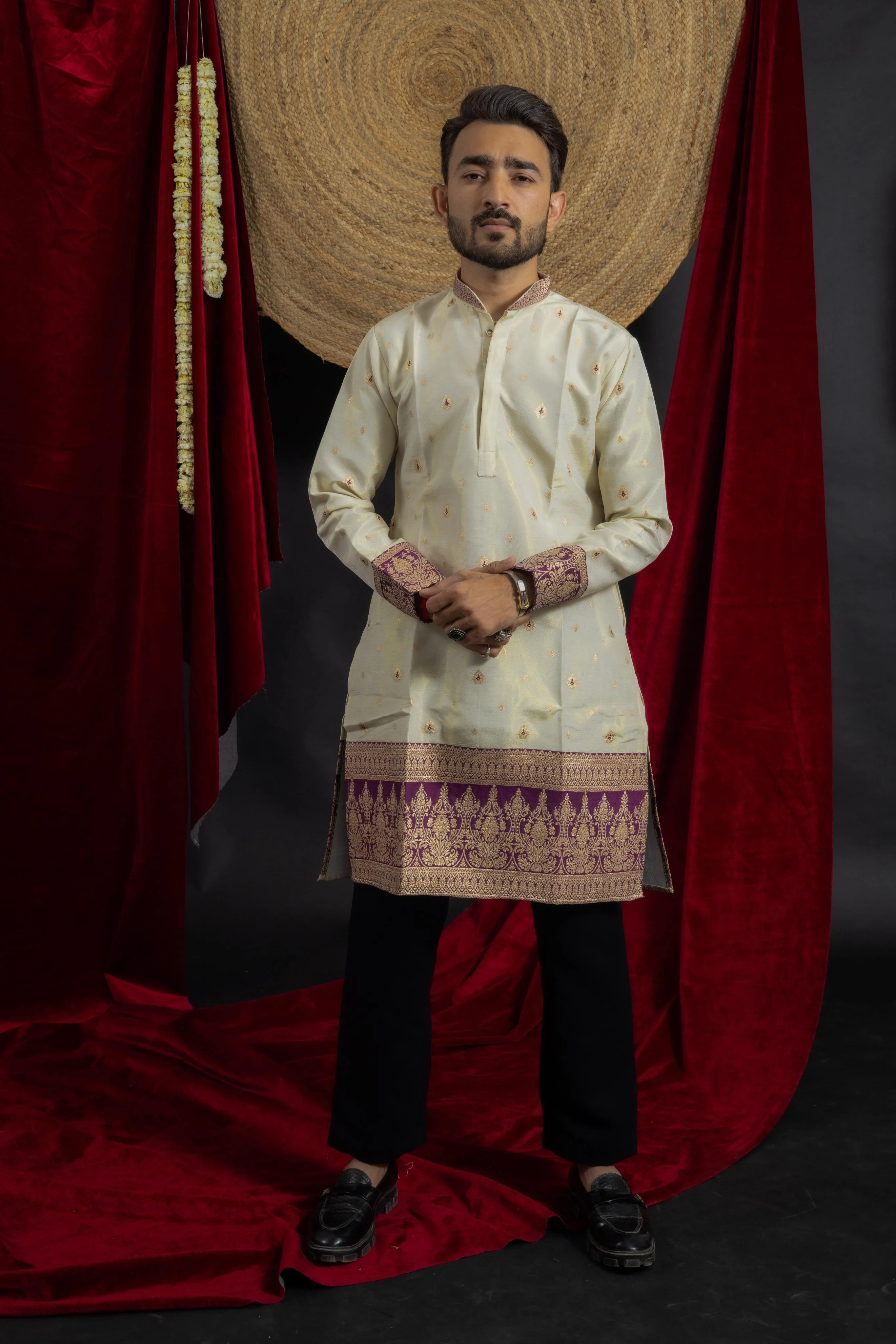 PURPLE KANJIVARAM BORDER IVORY JACQUARD DESIGNER KURTA