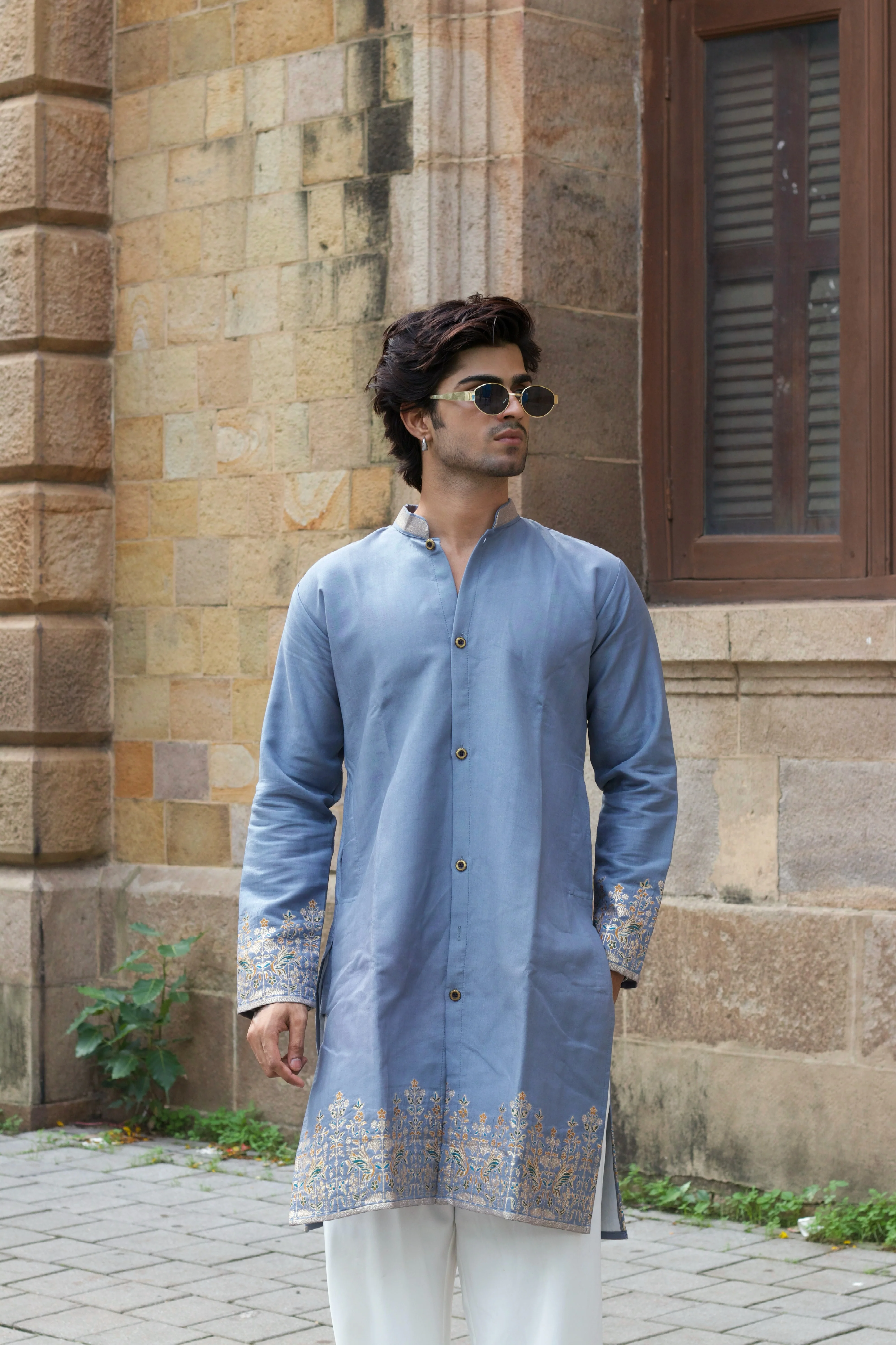 Designed with a structured silhouette, mandarin collar, and handcrafted buttons, this piece effortlessly merges heritage craftsmanship with contemporary style. Perfect for festive occasions, weddings, and cultural celebrations, this kurta is a statement of refined luxury.